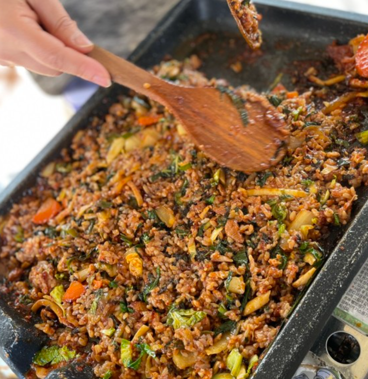 오리주물럭을 어느정도 다 먹은 후 볶음밥을 시켰습니다. 볶음밥은 그릇에 밥이랑 재료랑 섞어서 주셨는데 저희가 따로 볶아먹으면 된다고 하셔서 열심히 볶았습니다. 이것 또한 여러분들이 생각하는 딱 그 맛이지만, 아는 맛이 제일 맛있는 거 아시죠? 볶음밥도 꼭 드셔보셨으면 좋겠어요